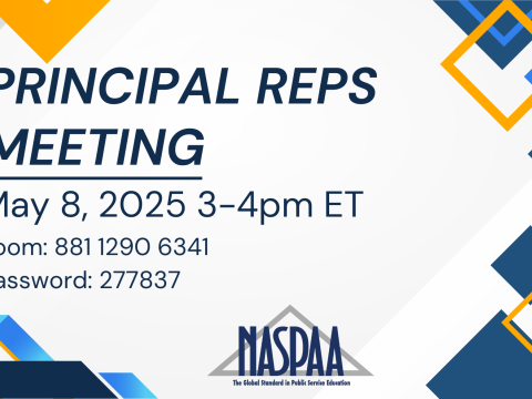 We realize that the annual business meeting during the conference is not ideal for two-way communication. NASPAA has scheduled a Fall and a Spring listening session with our principal reps to address concerns you may want to discuss.